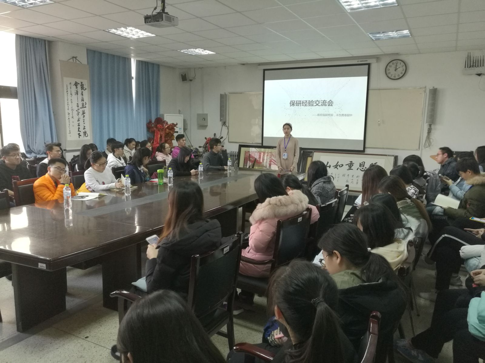 本站讯 12月1日,我院于图东环楼208室举办保研经验交流会。来自2015级并已保送至名校的孟泽、白迪、伊文秀、曹继中和张曼芮受邀作为演讲嘉宾。学院部分同学参见了此次交流会。此次交流会由马淑婕主持。